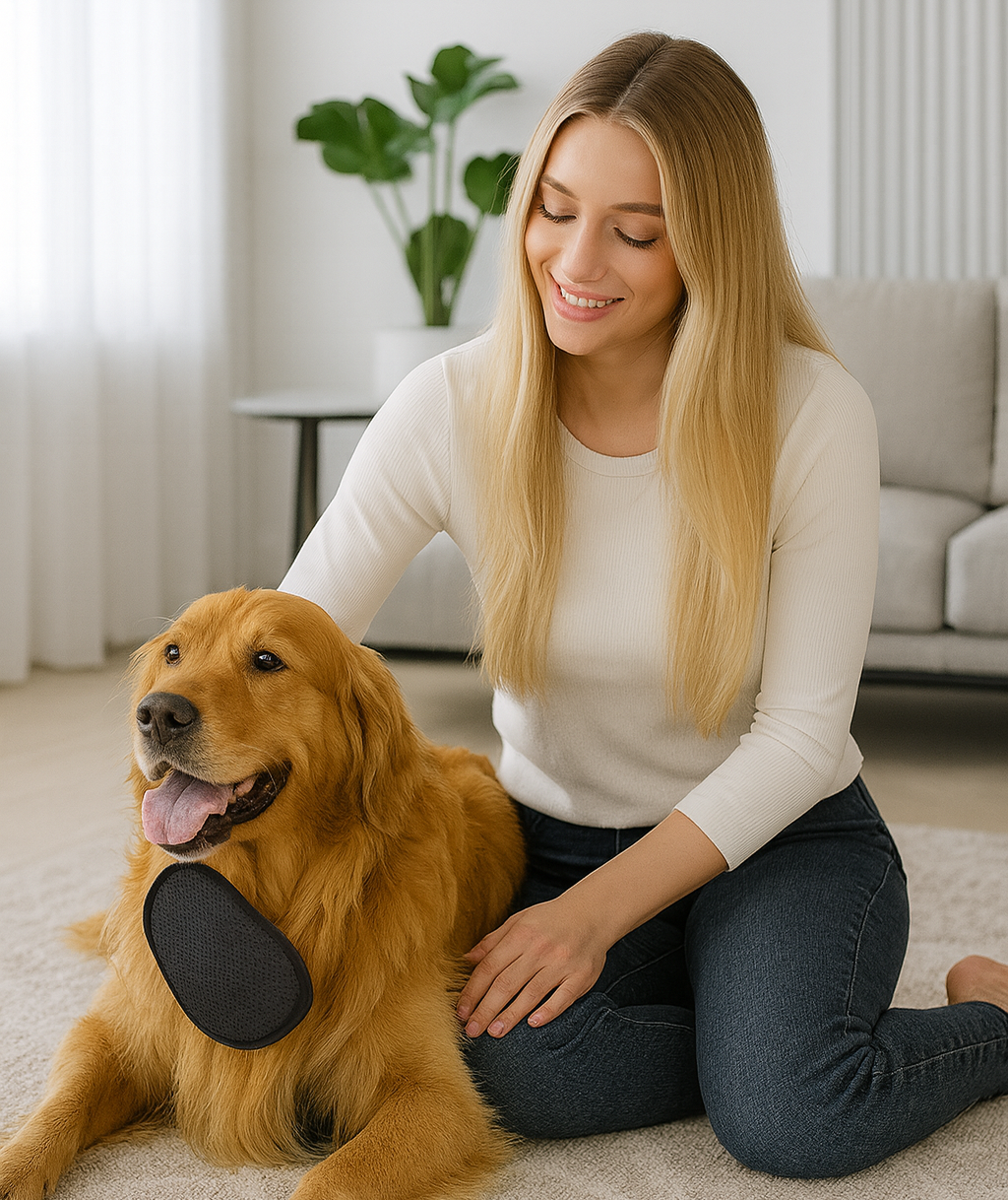 The Furluna Pets 2-in-1 Mitt makes pet grooming simple, fun, and mess-free. Brush, massage and remove loose hair in one easy step — because a happy pet and a clean home should go hand in paw.